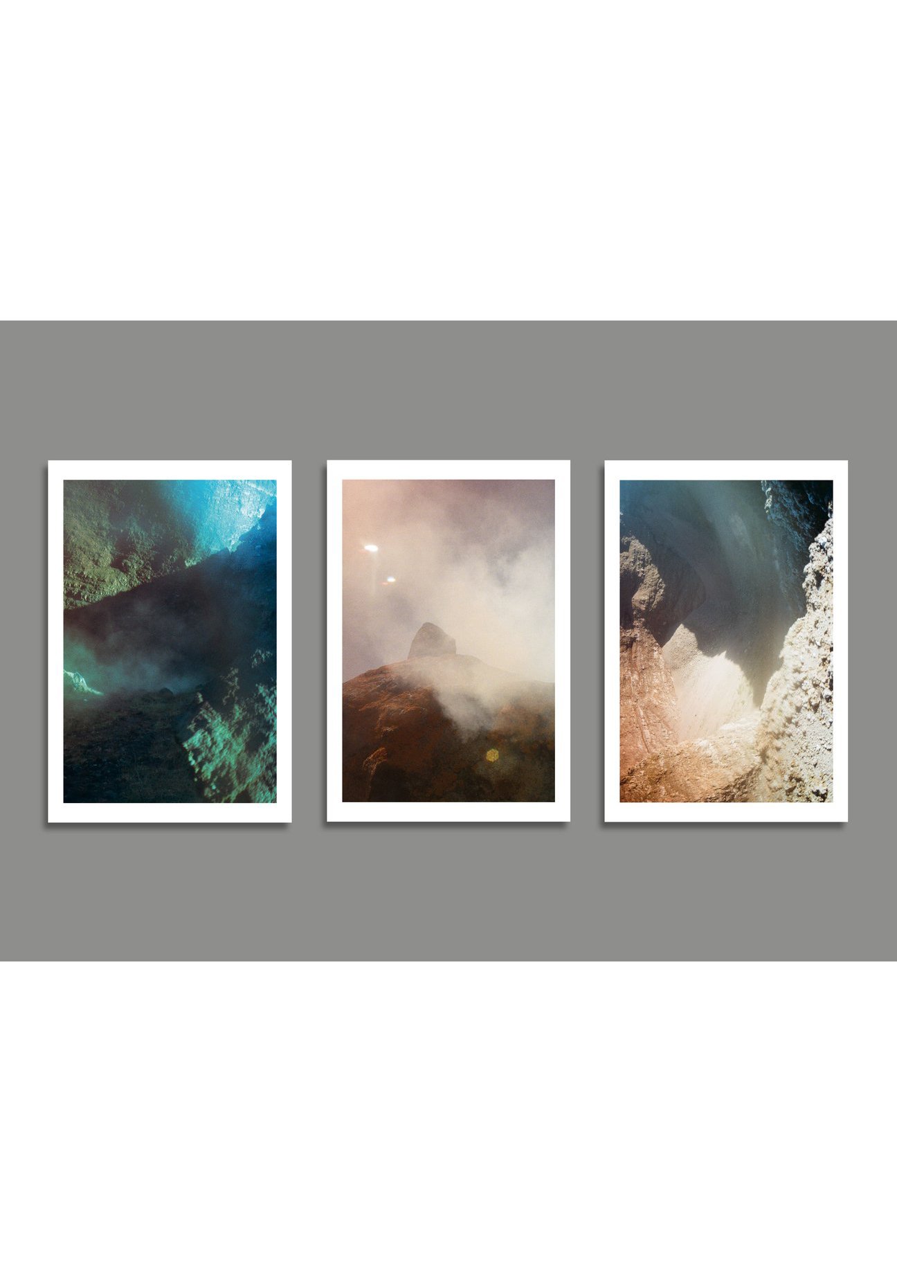 A special Edition of Volcano Songs by Wanda Orme. A bespoke pearlescent folder, printed in white and held by a black binding band, containing a copy of the book, together with three prints from the series. Limited to only 50 sets. Hand signed and numbered.